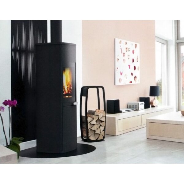 Le rangement à bûches JEROBOAM permet de stocker environ trente bûches de longueur 33cm près du foyer, avec un design soigné.